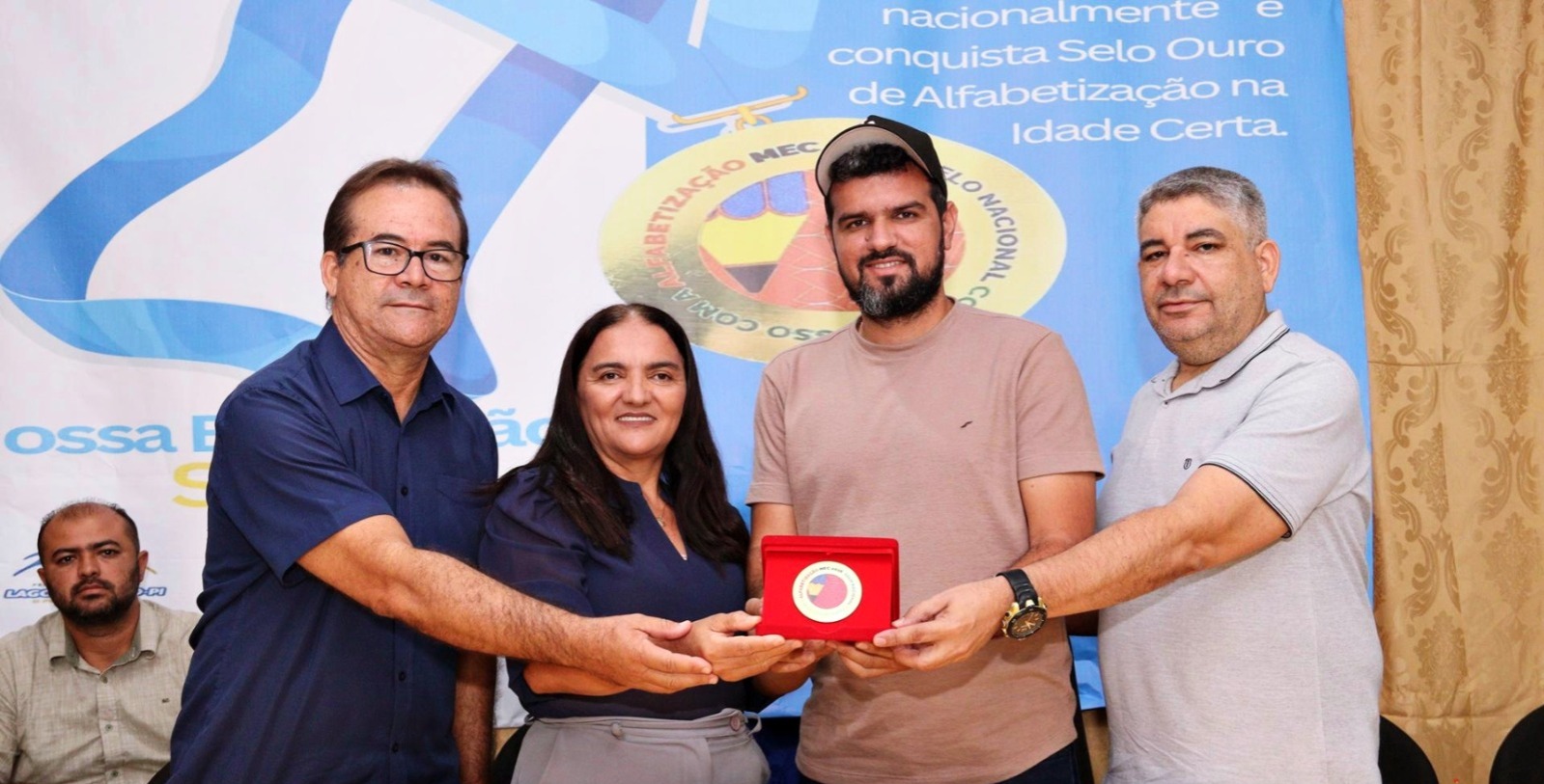 A honraria é concedida a municípios que alcançam resultados expressivos no processo de alfabetização de crianças. A entrega oficial do selo aconteceu em Brasília, no mês de março, quando o reconhecimento foi recebido pelo prefeito Sávio Moura. Já nesta segunda-feira, a gestão municipal promoveu um ato simbólico de valorização aos profissionais da educação e estudantes que contribuíram diretamente para essa conquista.
