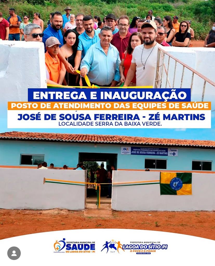 Data: 27/02/2025A Prefeitura de Lagoa do Sítio, através da Secretária de Saúde (secretário Rodrigo Moura), realizou a inauguração do Posto de atendimento das equipes de saúde da localidade Serra da Baixa Verde, zona rural do município. O Posto leva o nome do José de Sousa Ferreira (Zé Martins), ex servidor da secretária de saúde, in memoria.