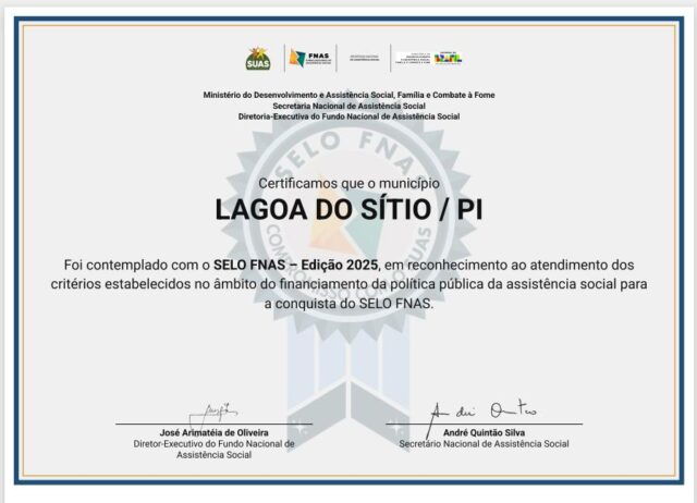 Data: 31/03/2026Duas importantes conquistas nacionais marcaram o encerramento da semana em Lagoa do Sítio, no Piauí, reforçando o compromisso da gestão municipal com a excelência em políticas públicas.